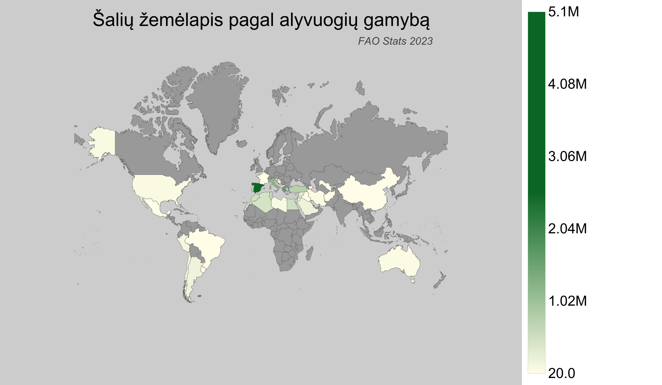 - Lietuva nėra įtraukta į FAO statistiką kaip alyvuogių gamintoja.