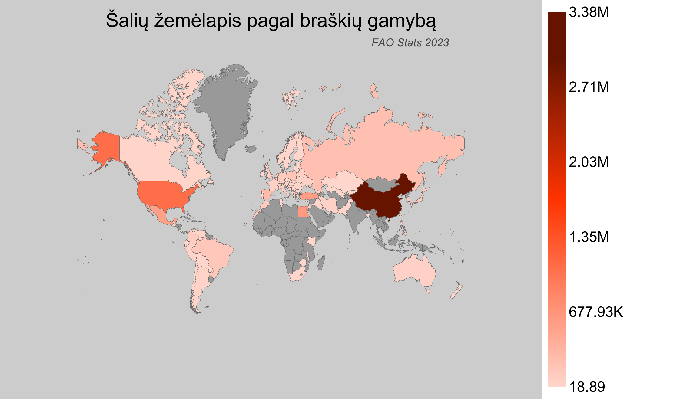- Kinija, didžiausia pasaulio braškių gamintoja, pagamina apie 3,39 milijono tonų braškių per metus.