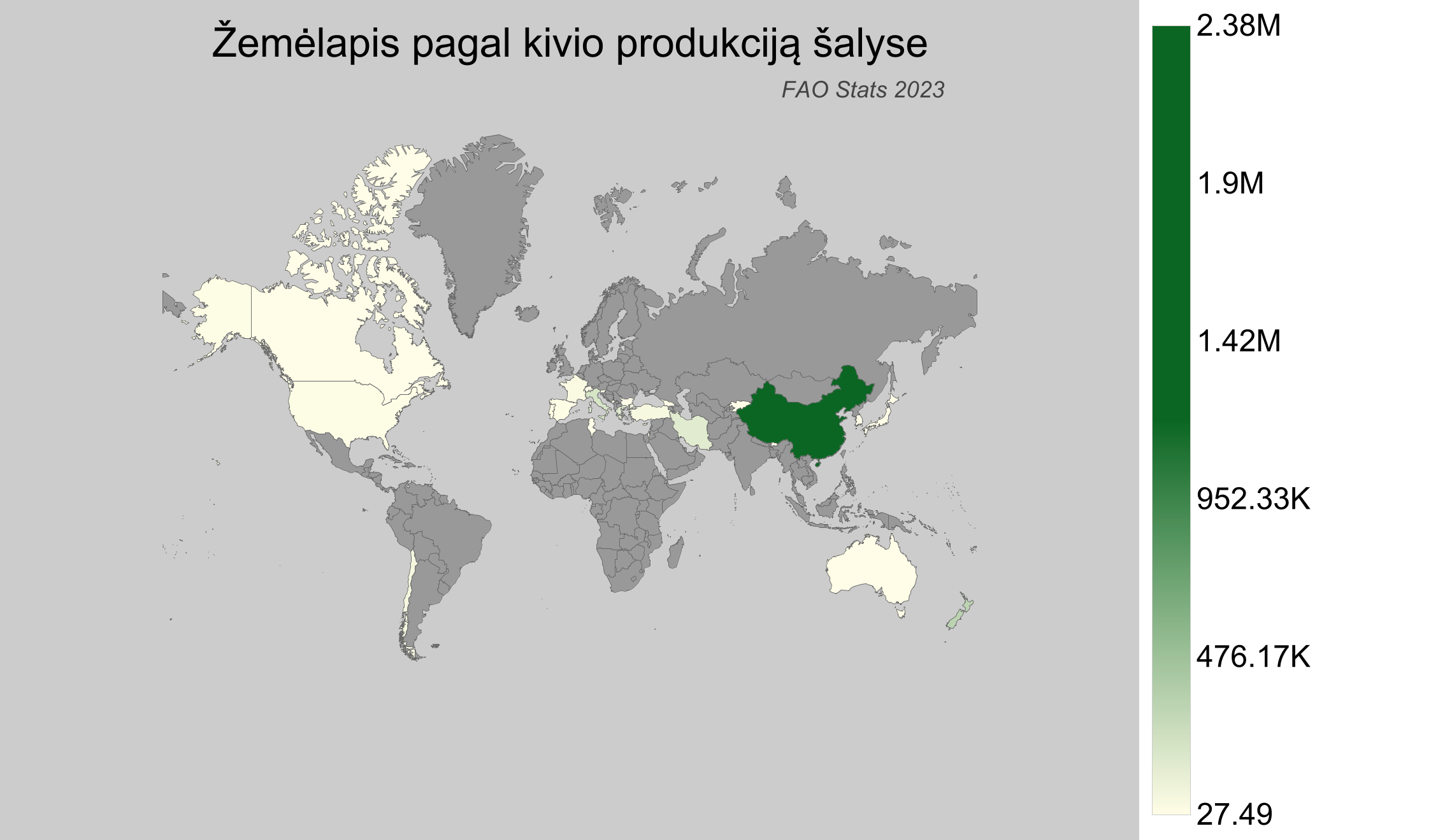 - Kinija - pagaminta apie 2,38 milijonus tonų kivių.