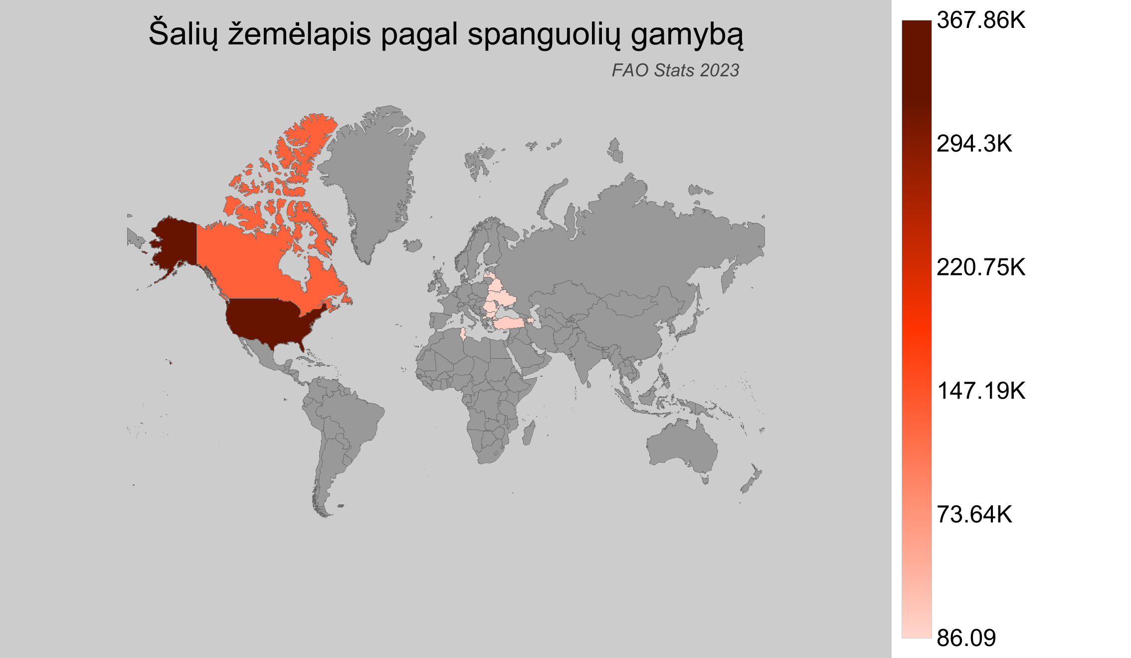 - Lietuva nedalyvauja pasaulinėje spanguolių gamyboje pagal FAO duomenis.